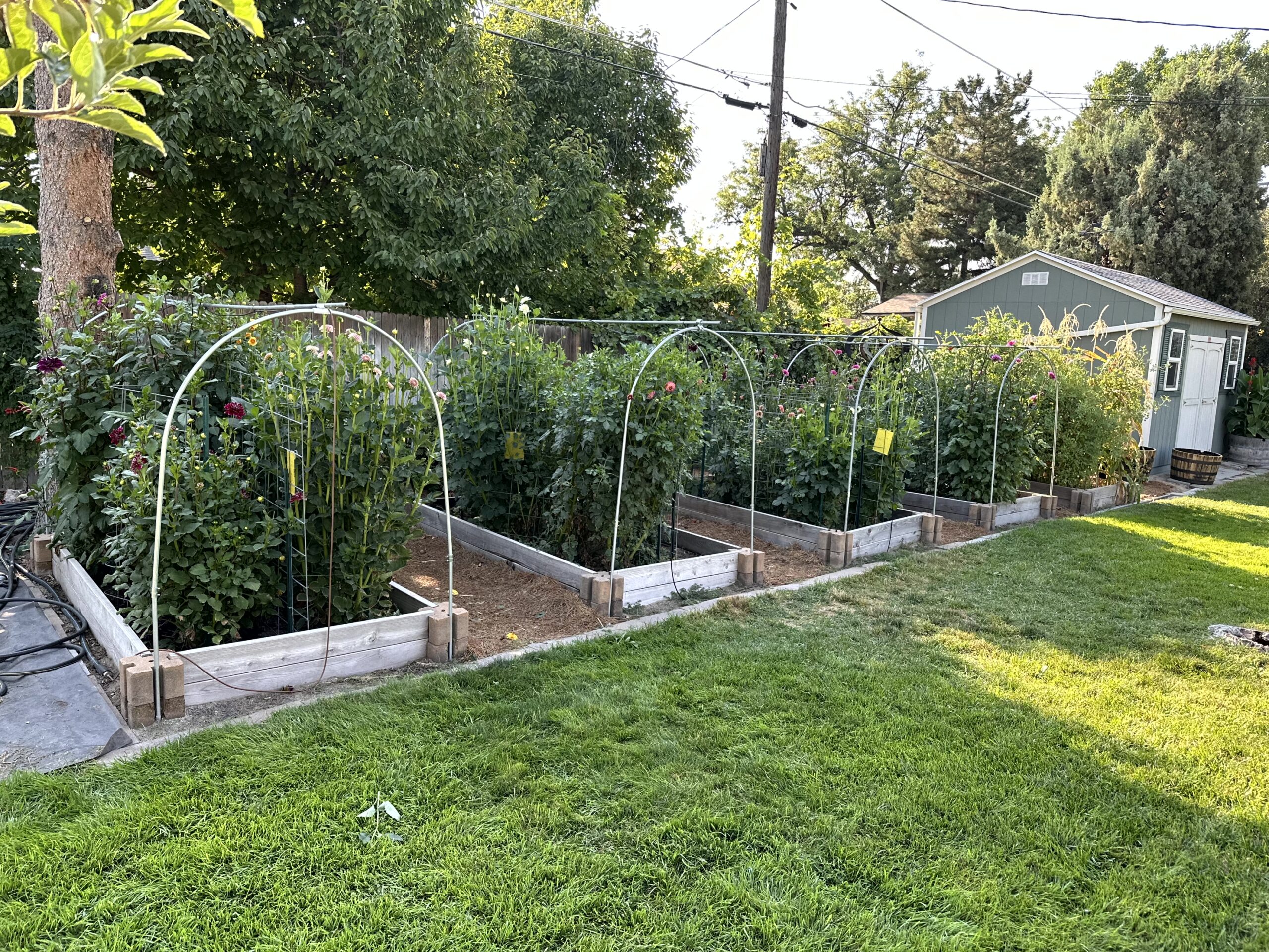 After the great dahlia debacle of 2024 where spider mites killed nearly everything, this year’s dahlia season was the best I’ve had yet. We started having a free dahlia table on the front yard just to share them with the neighborhood. Andrew especially liked hanging out in the hammock and babysitting the table. Keeping up with sourcing jars was the biggest challenge, but thanks to some helpful friends and neighbors who brought me their glass recycling, I gave out 377 bouquets this year–95 of which went to making sure every staff member at the elementary school got one to enjoy. The elementary school even kept a dedicated jar return bucket in the front office for me for the duration of the season so I could pick up and reuse jars. I know the flowers made a lot of people smile. We added an additional garden bed for next year and I’m already planning for spring!