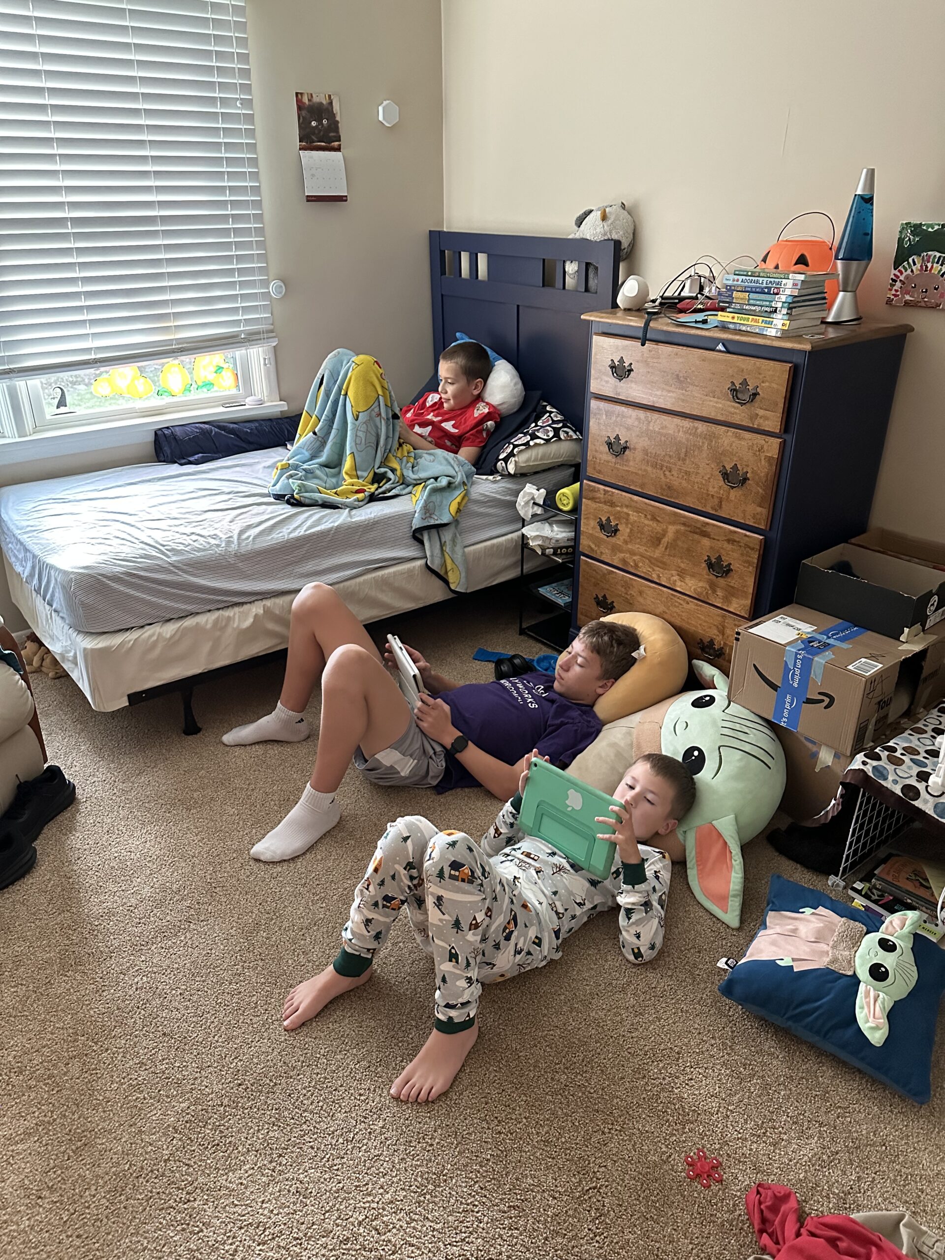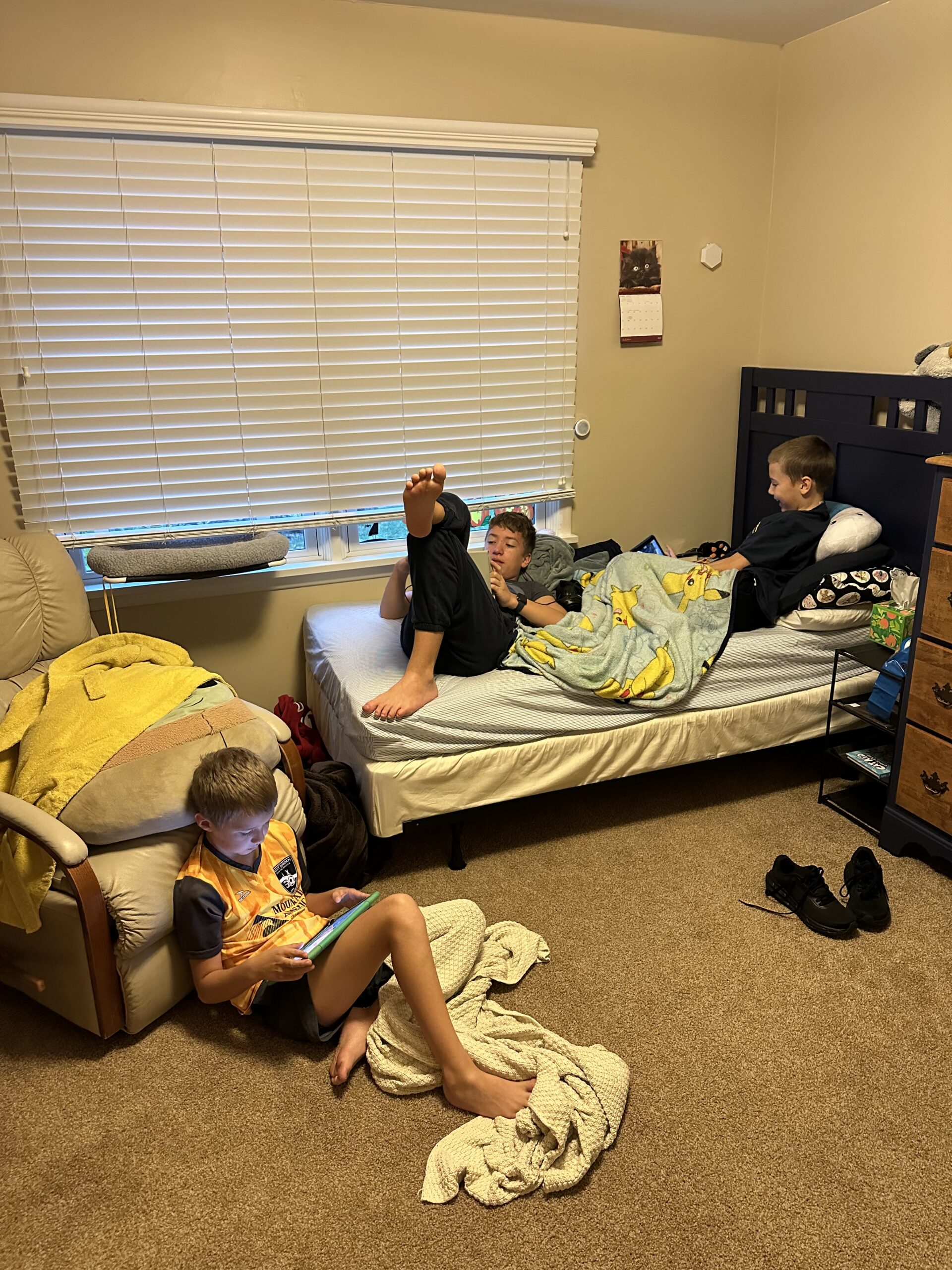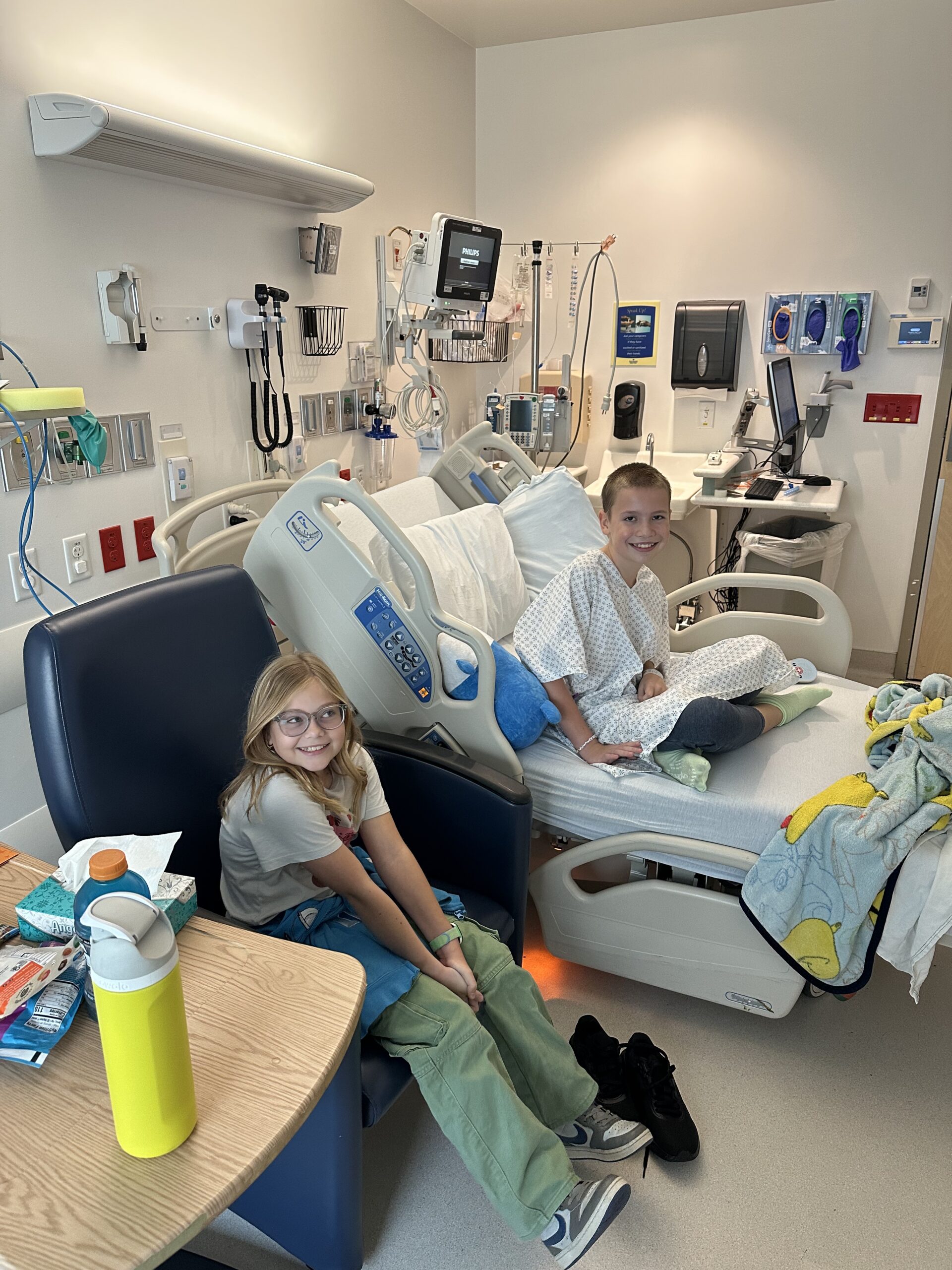 discovered he had a fever so ruled out Covid/Flu A & B with a home test. Thursday morning his fever was HIGH (104 without meds and 102 after dumping meds into him) so I called the pediatrician and they got us in same day. Now his heel was visibly swollen so we did a CBC and X-ray. Both were unremarkable except for an elevated CRP (a sign of inflammation). We went home having ruled out the really scary stuff with instructions to come back Saturday if he was still struggling. The next day (Friday) his shoulder started to also hurt. I thought the fever was trending in the right direction but his shoulder was enough to send us back to the pediatrician on Saturday. I again ruled out Covid/Flu A & B via home test and we did a strep test in clinic. We were instructed to head to Primary Children’s Hospital ER on Monday morning if things were not improving. Well, spoiler, the pain got worse and we were still fighting a fever, so Monday 10/13 we reported to the ER department. After an X-ray, and bloodwork we were moved to inpatient. We had an MRI and shoulder joint aspiration which confirmed we have osteomyelitis (bone infection)…specifically MRSA, an antibiotic resistant staph infection. This morning Chris had surgery on his shoulder to clean and flush the joint capsule. He has a drain and they are testing and culturing lots of blood and fluids. We are still wait and see on if they need to drain his heel/ankle. We are inpatient here through at least the weekend. We need his labs to trend in right direction for at least 48 hours before they’ll consider sending us home. It will be slow going but Primary Children’s is a great hospital (one of the best in the entire Intermountain West) and it sounds like I did exactly what we needed to do to get him here. The good news is the infection didn’t spread to his heart and so far no other joints are becoming inflamed. Apparently this is more common than one would think…the infectious disease team has seen 3 cases this week without obvious trauma or cause. Essentially just bad luck for an otherwise healthy kid. If anyone wants to FaceTime or visit please reach out by text! This is also your reminder to trust your gut and advocate for your healthcare. Much Love. S. ~